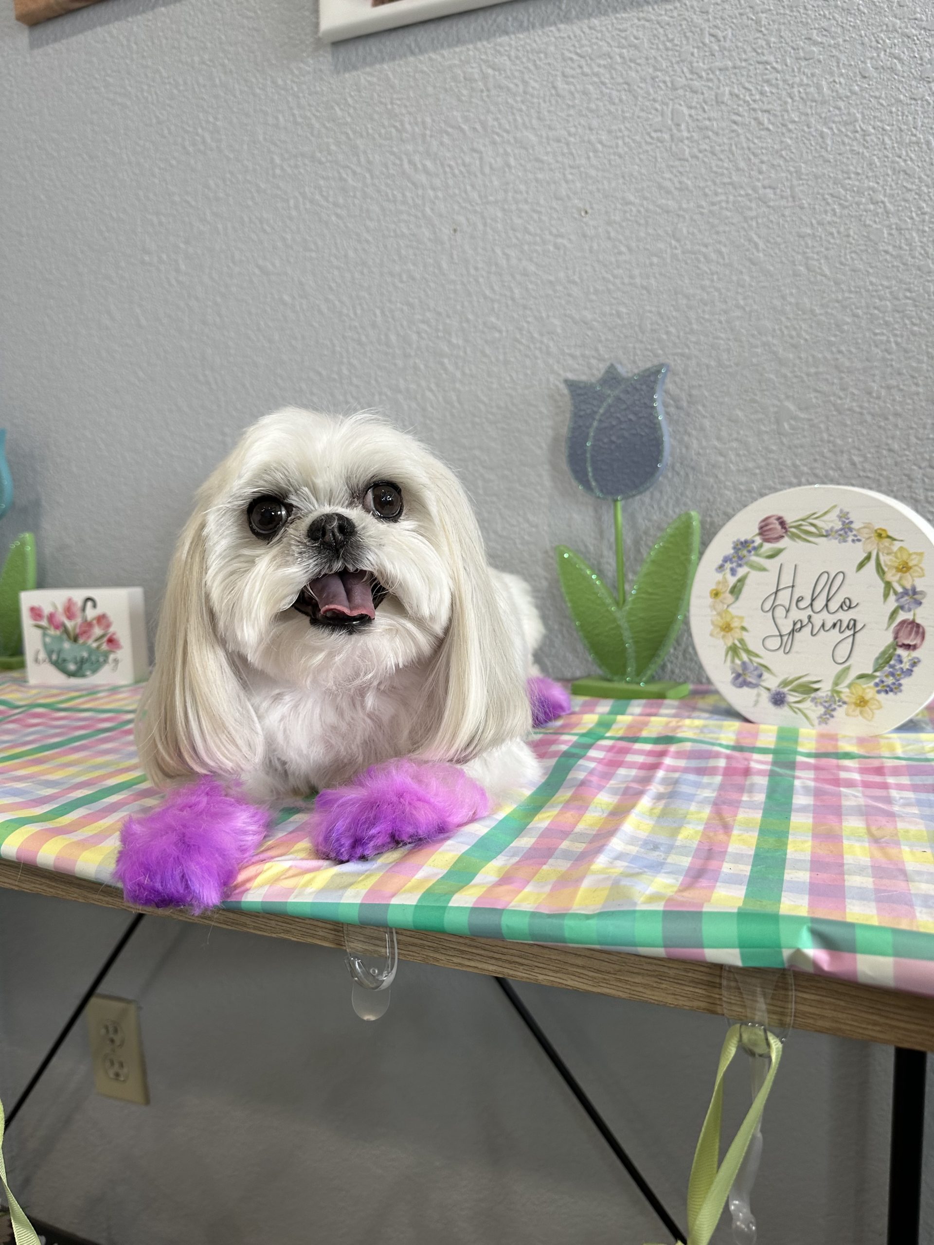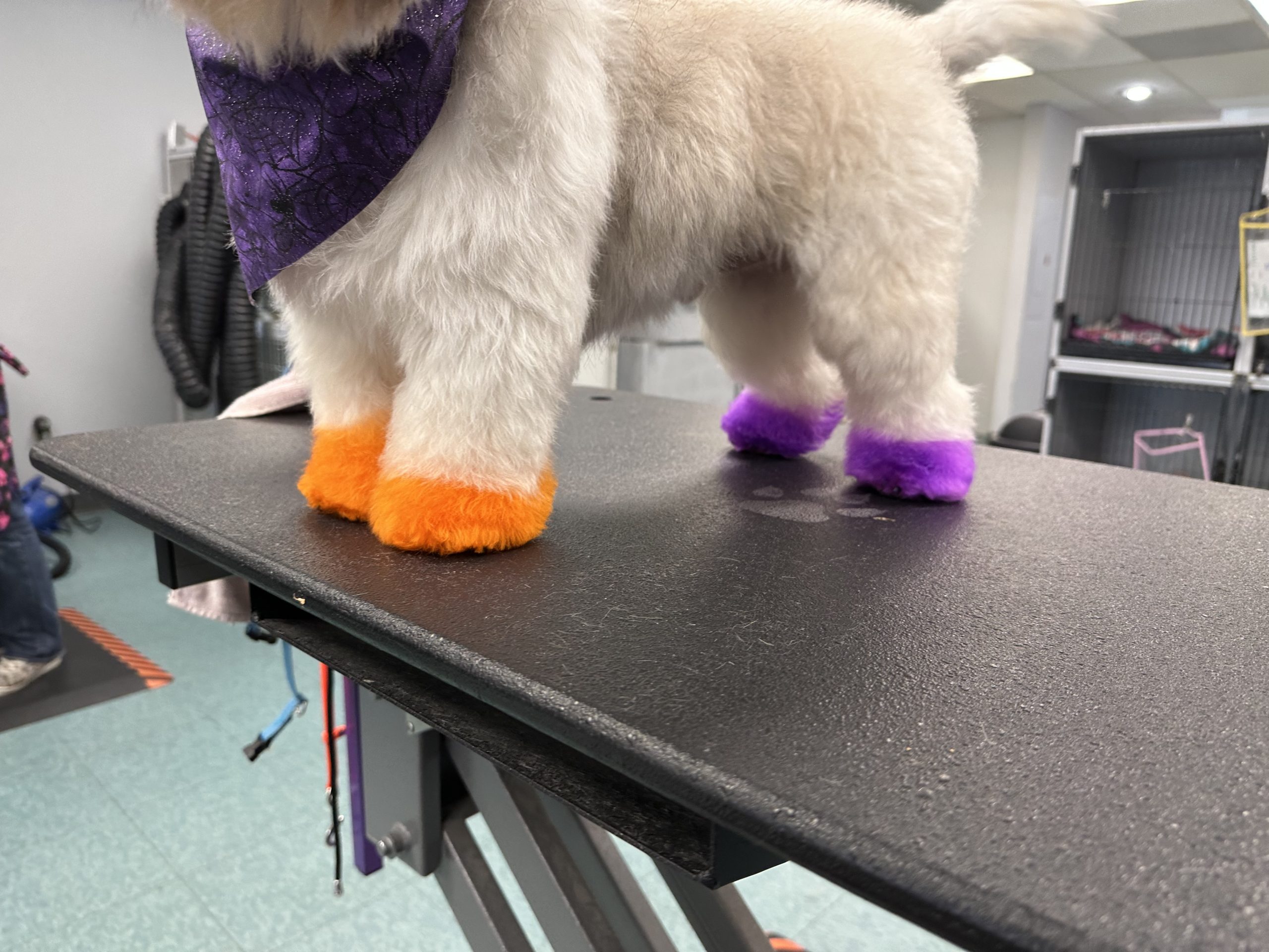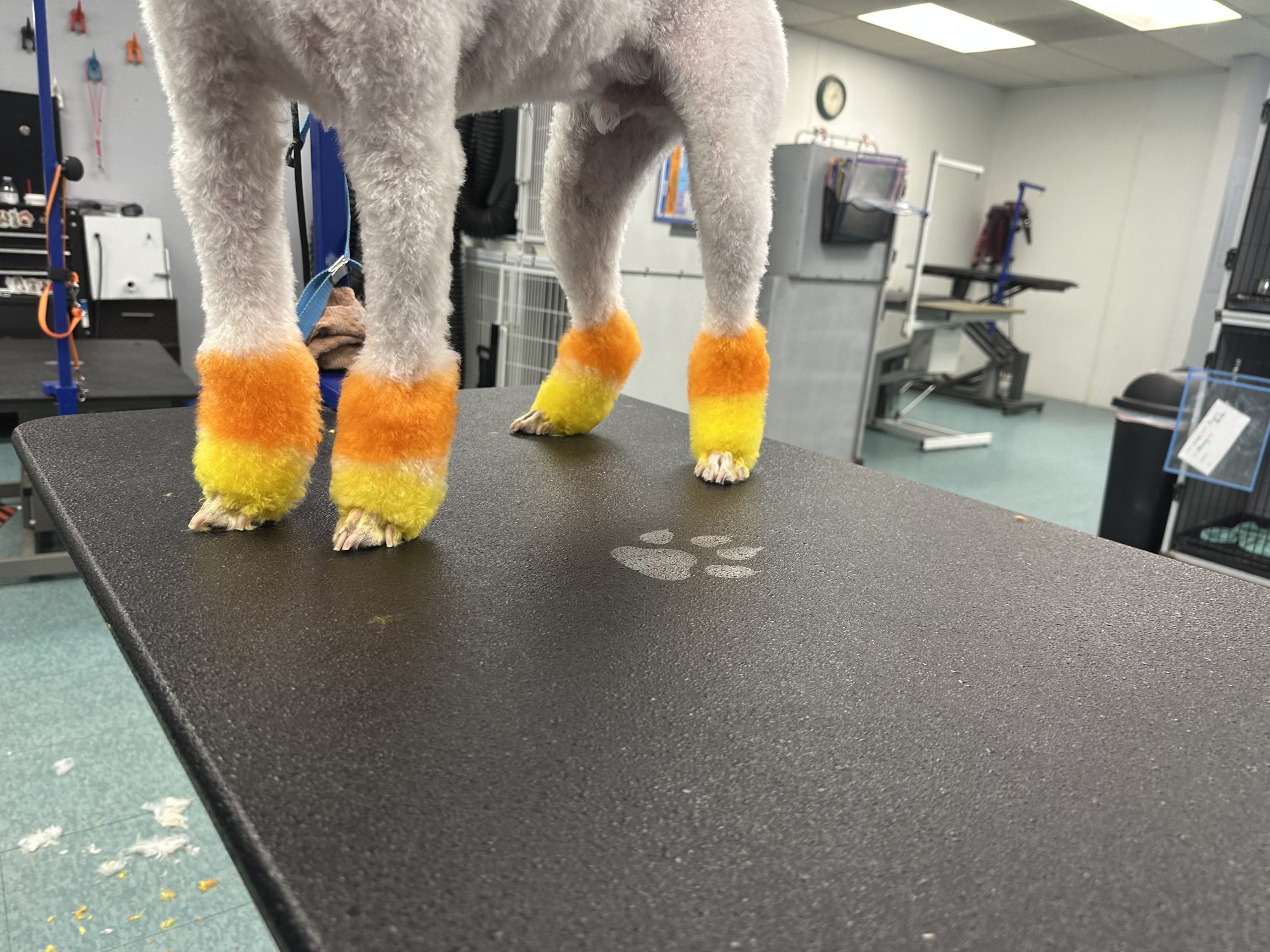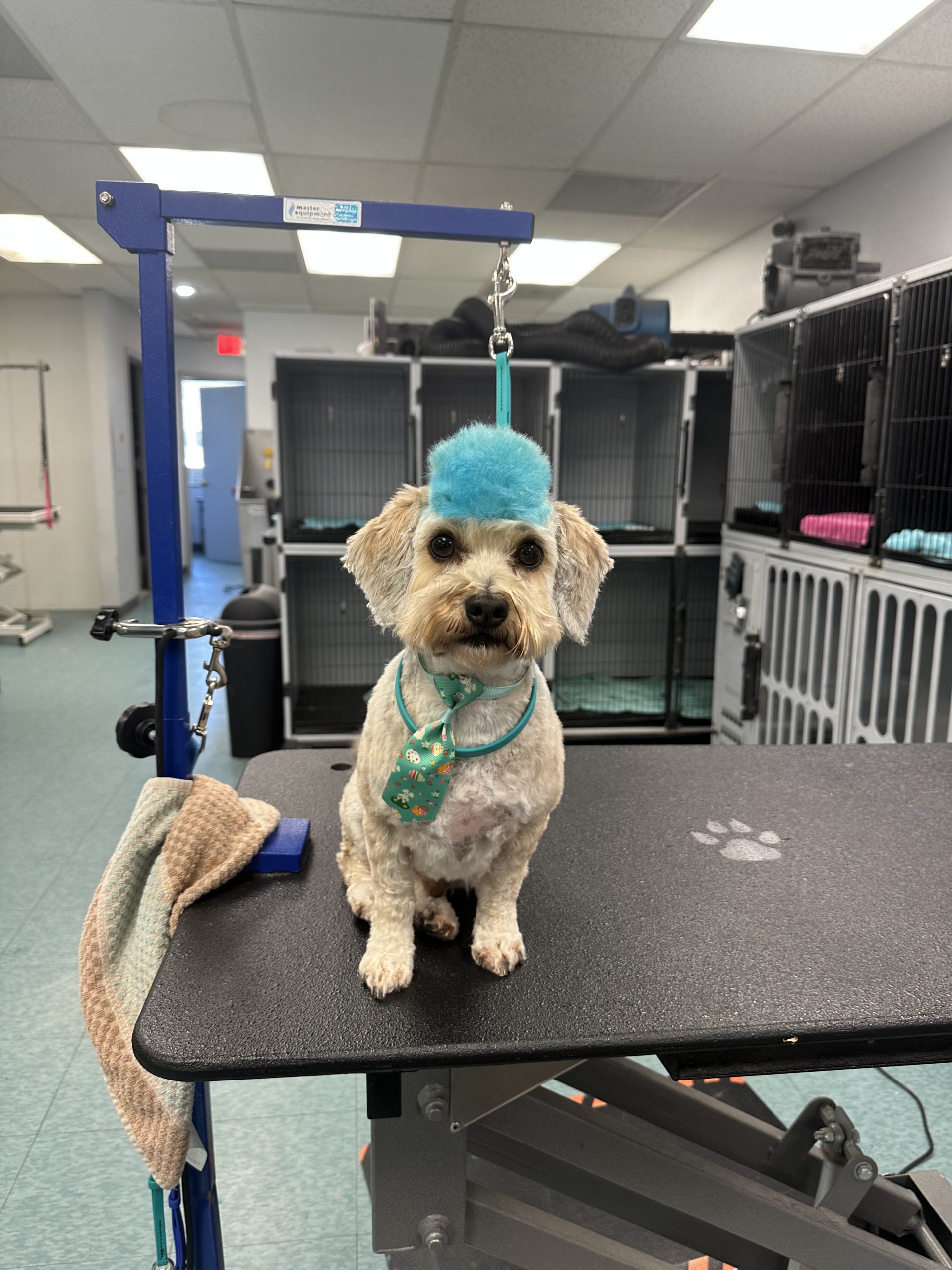 Creative Grooming- Pet-safe, vibrant dyes for creative accents or full designs. Pricing varies by based on design, coat length, and size. For safety, this service is available only to current clients whose behavior and coat we’re familiar with. Please call for more information.